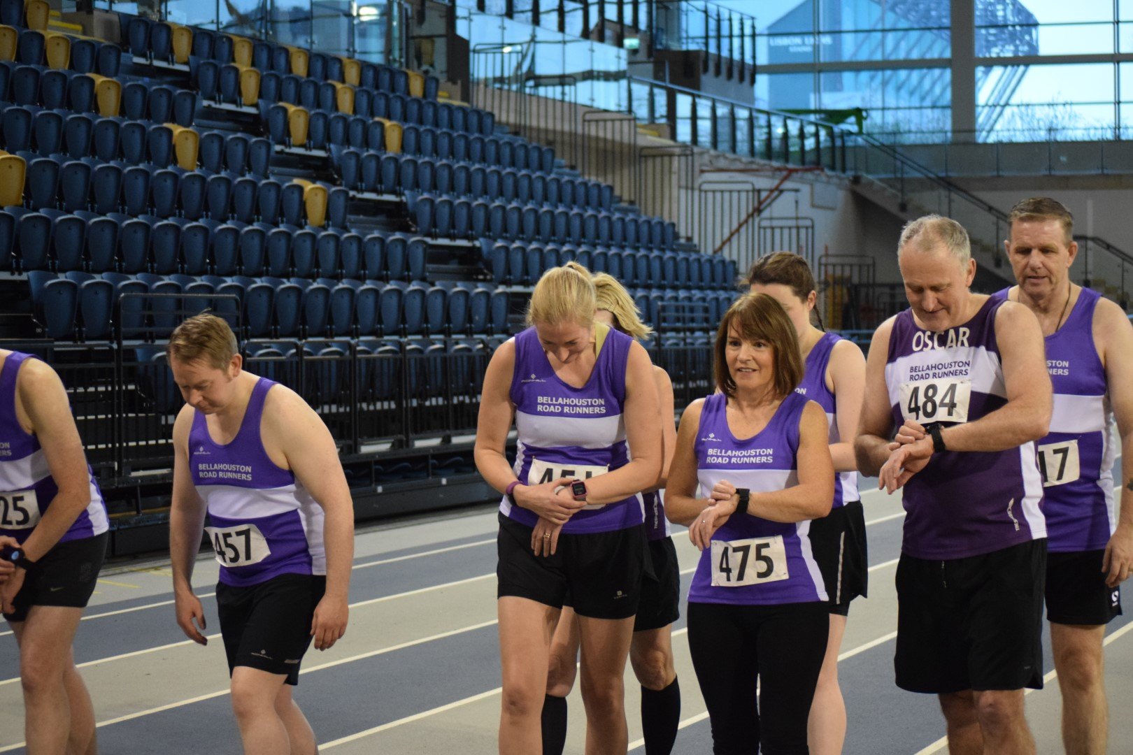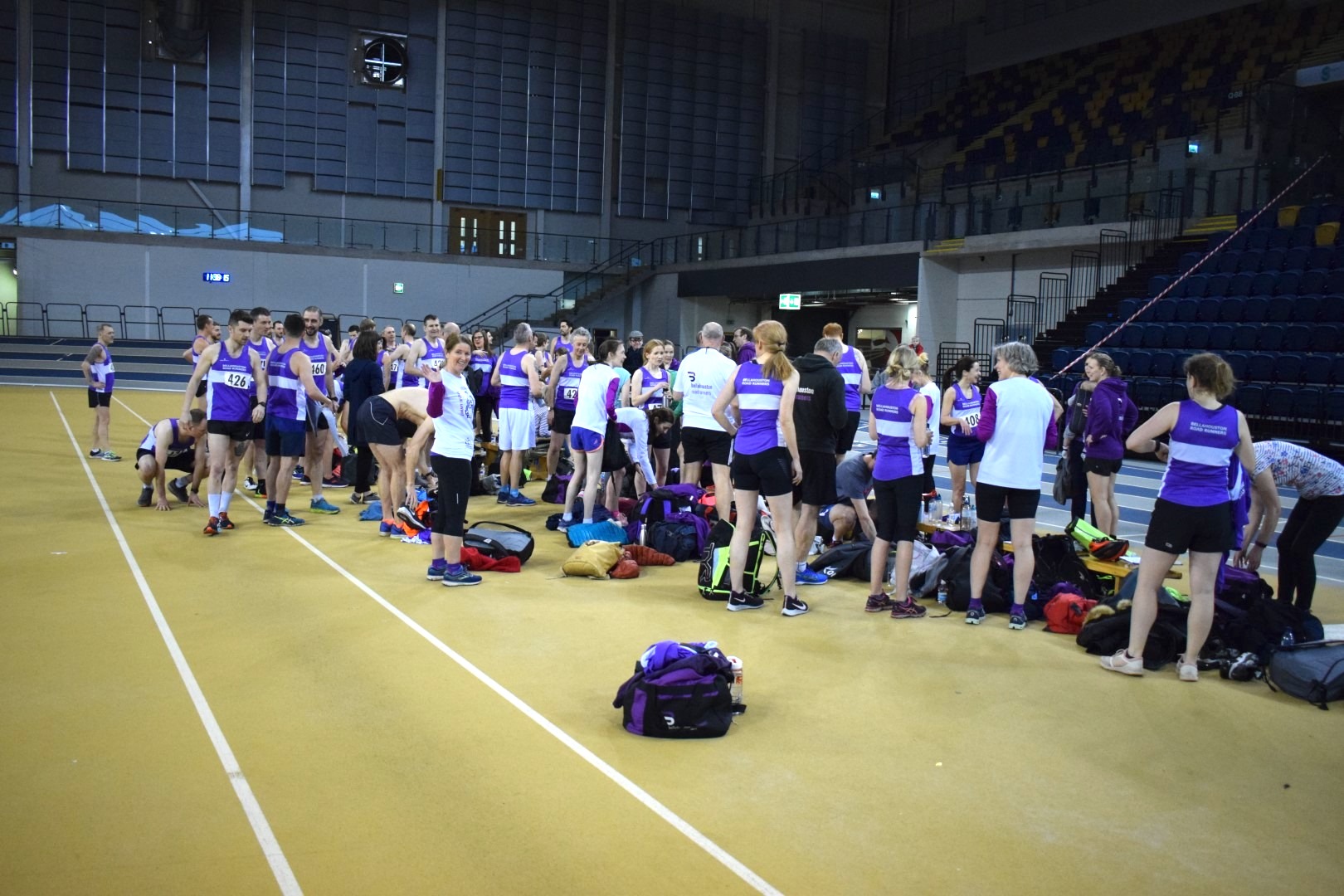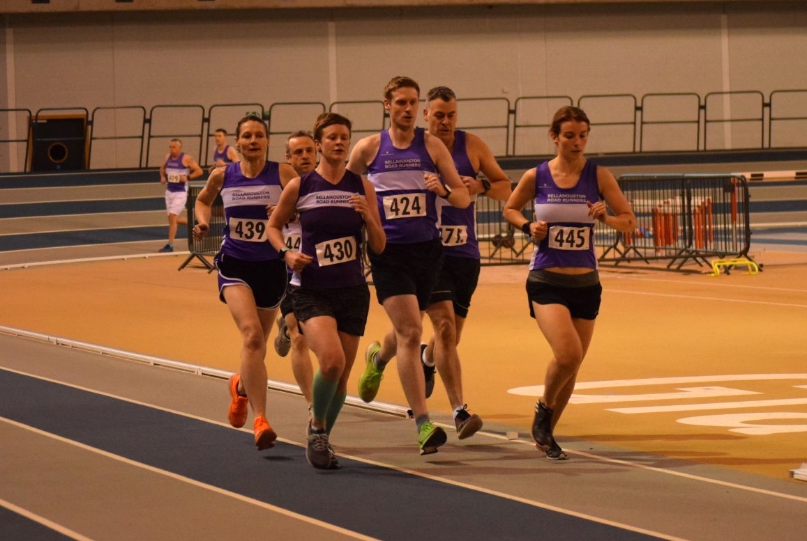 The day kicked off with an exclusive booking of the prestigious Emirates arena indoor running track. This was the first time many members had ever run on this fantastic resource. The focus of the morning was a series of 1 mile race heats, enabling members to challenge themselves at a short but tough race distance. There were great performances and a good few personal bests right across the club. The session concluded with a fun relay event, with team members each running a 200m lap: huge fun, if a little chaotic!
